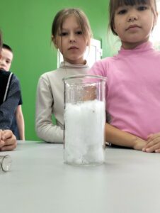 В химико-биологической лаборатории «Точки роста» во время очередного занятия внеурочной деятельности «Наша лаборатория» второклассники провели «снежные» опыты.